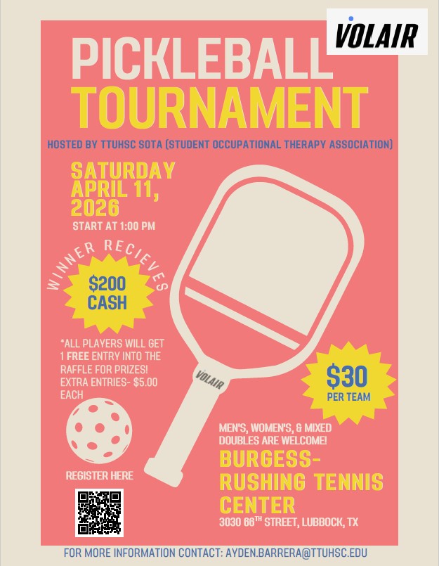 TTUHSC’s SOTA pickleball tournament Contact: [email protected] |